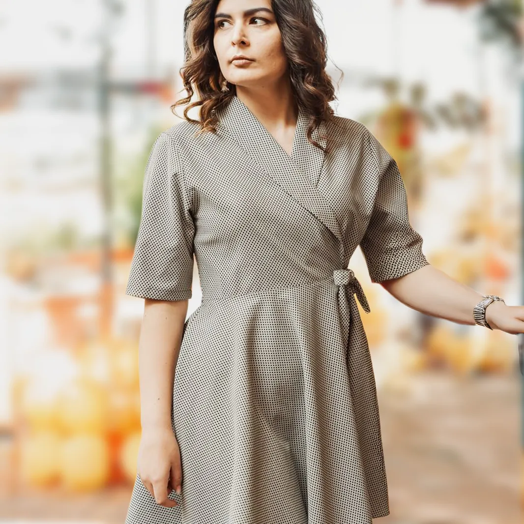 Rochia scurtă Pepita Belle, cu model pepita alb-negru și talie conică, te învăluie delicat, oferind în același timp libertate de mișcare și confort. Lejeră, feminină și încrezătoare – exact așa cum ești tu.